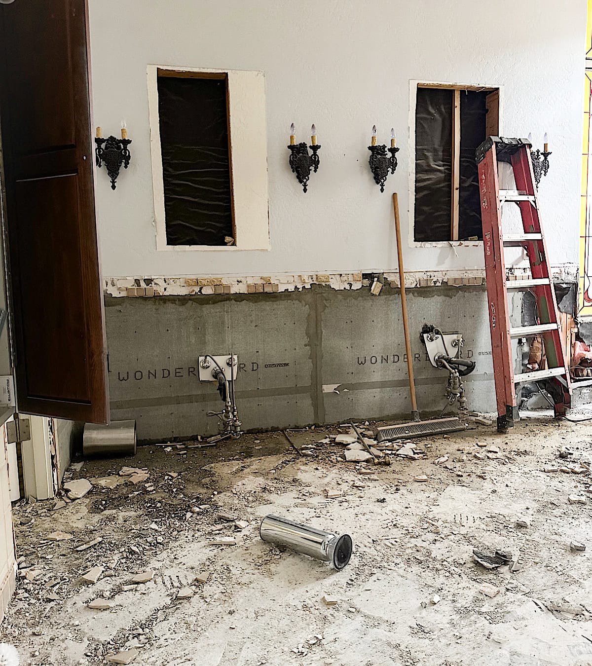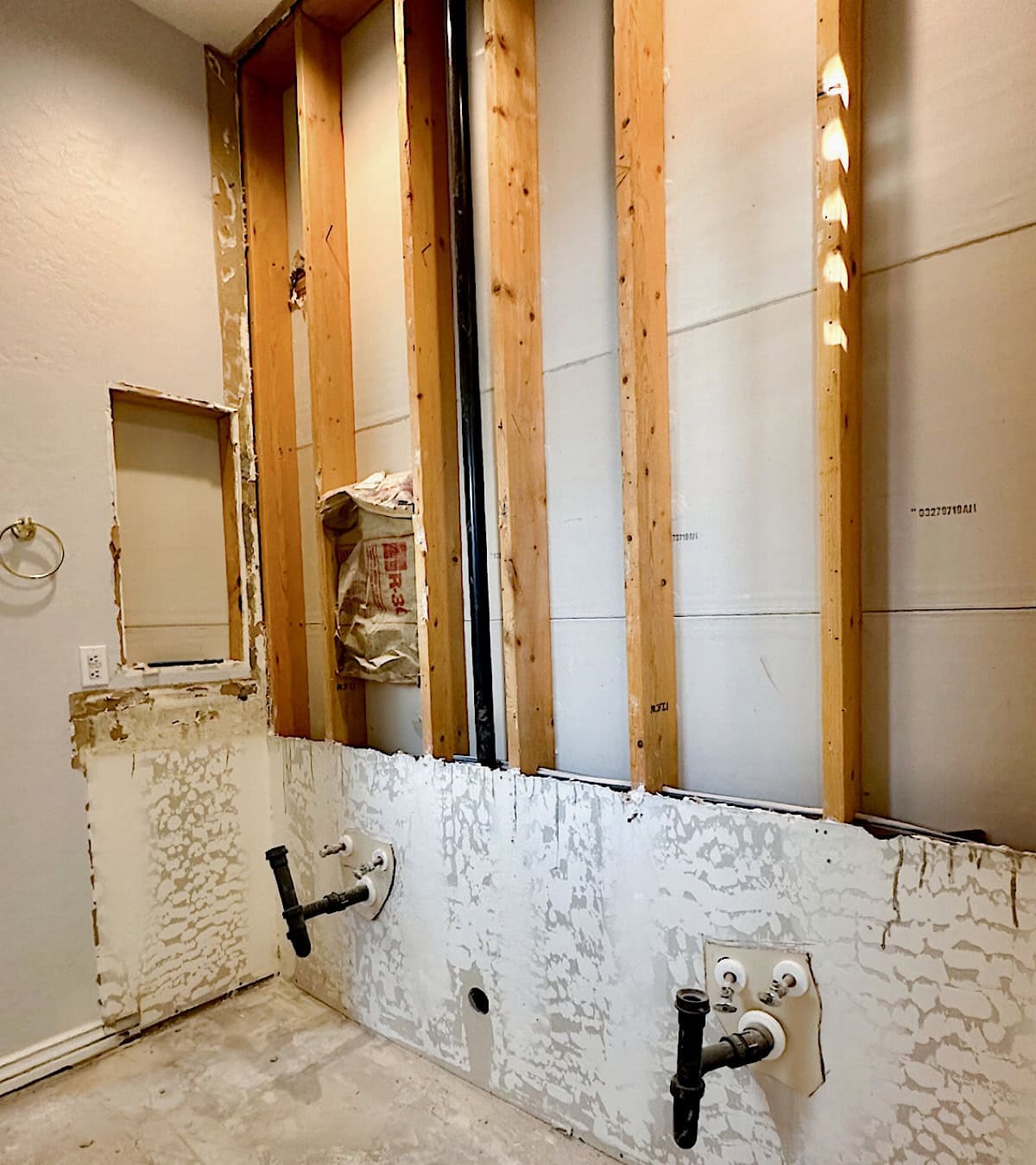 Order everything, and I mean EVERY SINGLE THING, before you start demo, and make sure it has actually arrived and is safely stored. I can’t tell you how many delays we experienced because of late plumbing deliveries, order changes, or cancellations. It was SO frustrating. One small missing piece can hold up the entire bathroom remodel. I highly encourage you not to start anything until all your materials are in. Trust me on this. Fixtures, tile, vanities, everything needs to arrive on time. Even something as simple as a missing faucet can delay progress.
