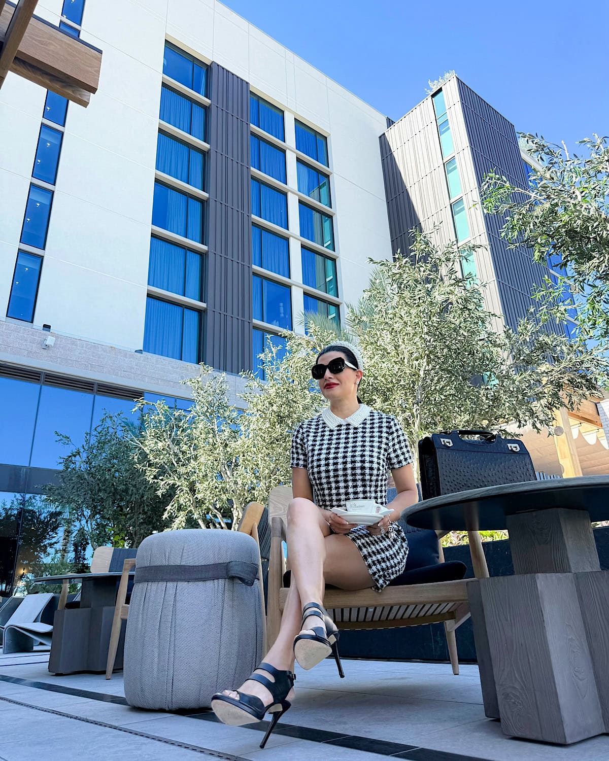 You can go with a heeled pair if you want to make it dressier or keep it more casual with a flat boot. And then there’s the black velvet dress with the jewel neckline, which has such a timeless, slightly dressier vibe. It’s one of those pieces you can wear to dinner, a special event, or even a fall wedding, depending on how you accessorize it.