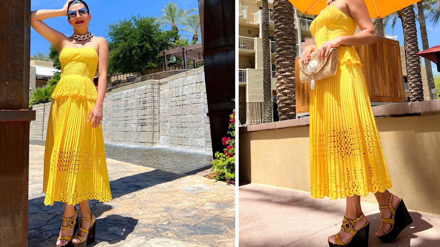Yellow and tan is a refreshing and stylish combination that brings a sense of warmth and brightness to any outfit. Yellow, with its cheerful and vibrant hue, is perfectly complemented by the neutral and earthy tones of tan. This pairing is ideal for creating a chic and effortless look, whether a yellow dress with tan accessories or a tan top with yellow accents. Yellow and tan work beautifully together to create a balanced, sophisticated, modern, timeless appearance.