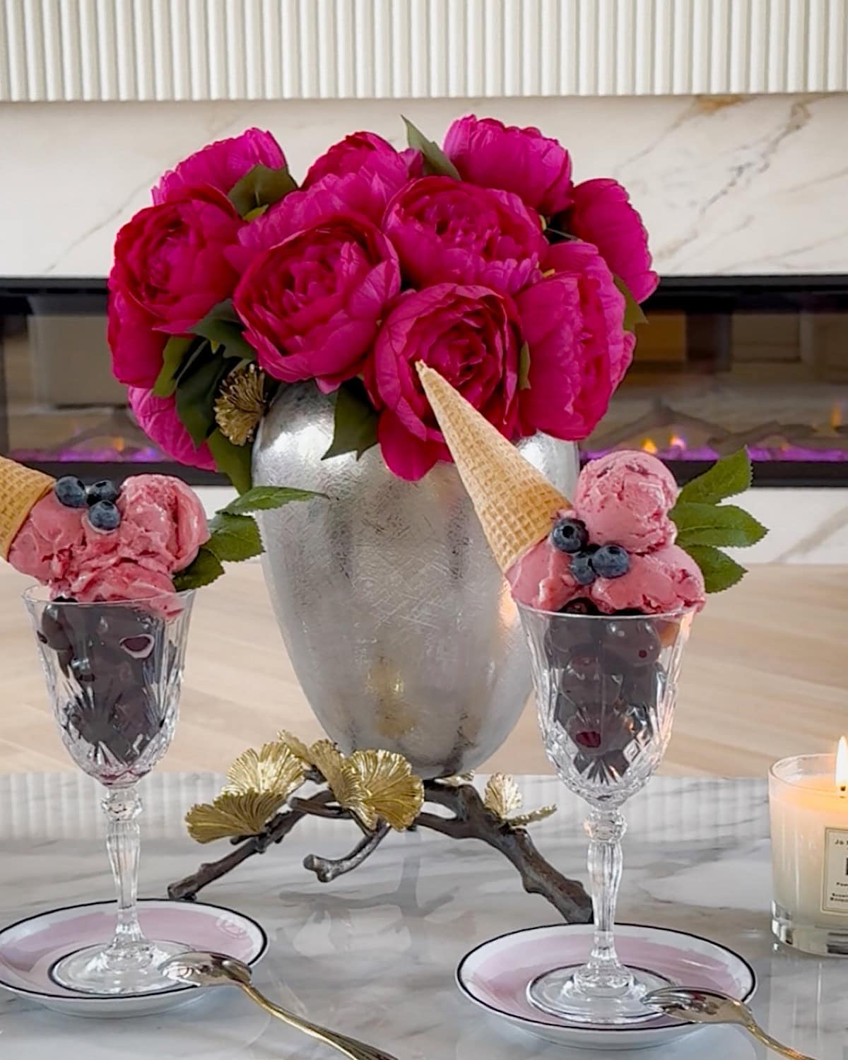 You can also serve the ice cream, gelato, or sorbet in these crystal glasses. A handful of fresh berries in the glass, a few more on top, and maybe even a little wafer cone is all it takes. The glasses themselves are what make it look so chic, transforming a plain scoop of gelato into a dessert that feels party-perfect.