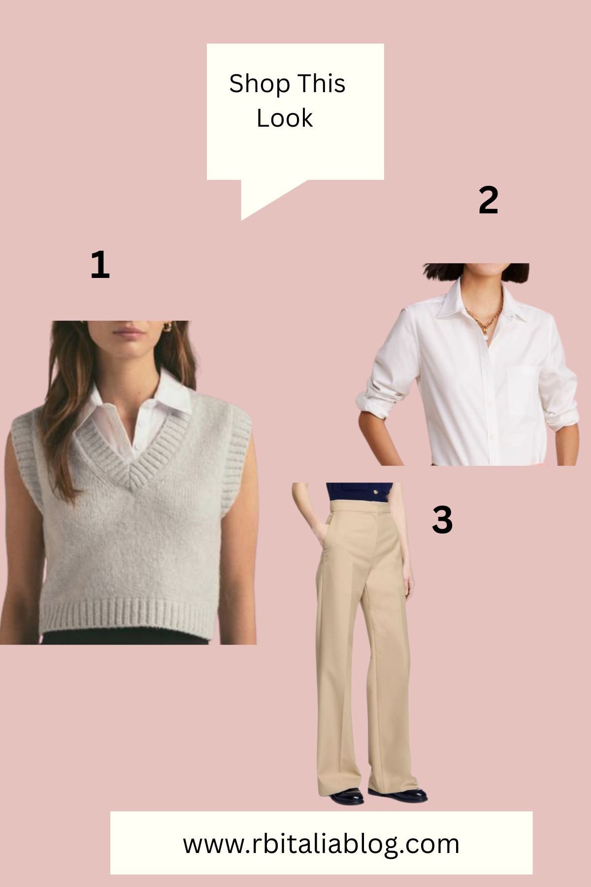 Cashmere Vest + White Button-Up + Tailored Trousers