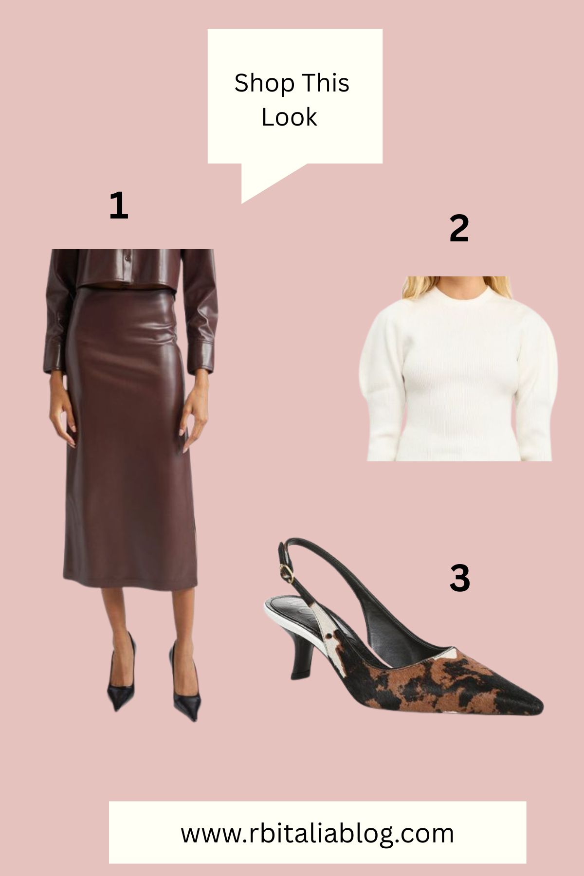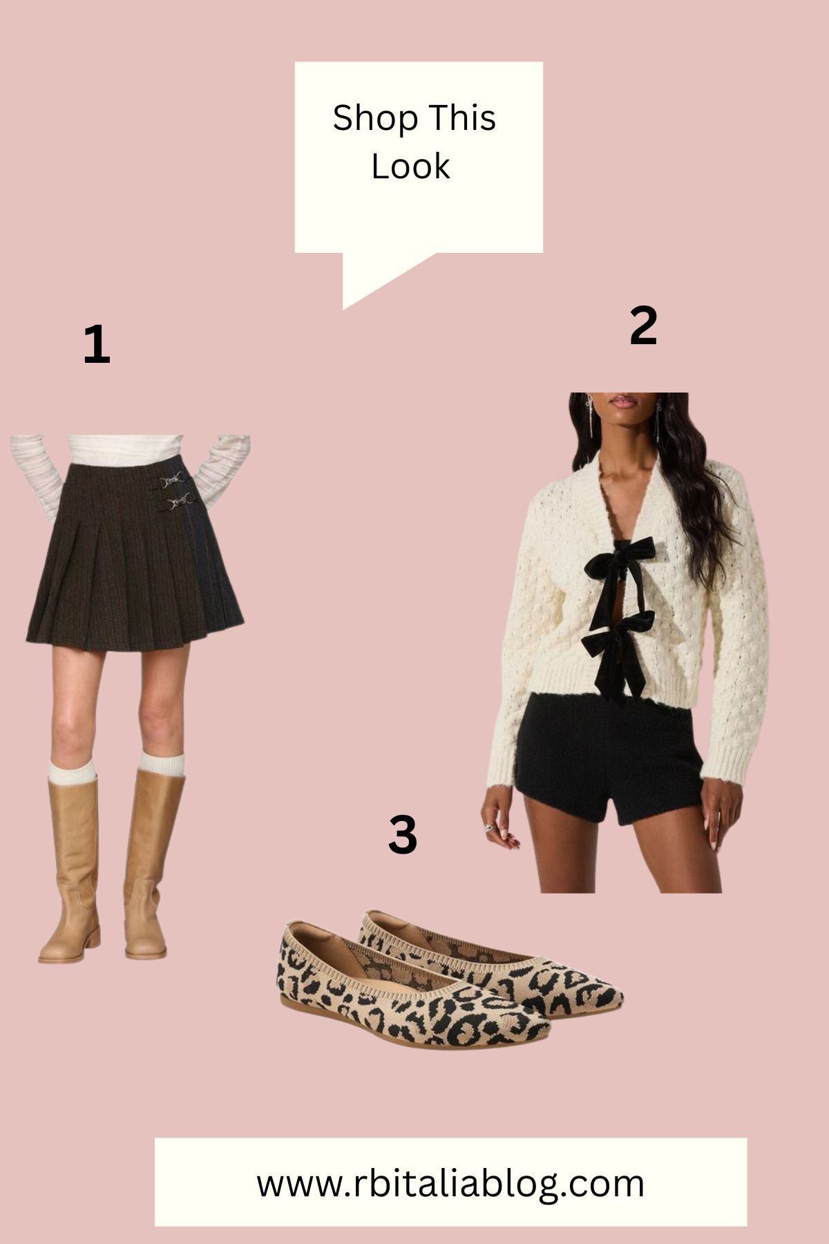This one’s cozy but still looks put-together, which is exactly what I want most days. The chunky knit keeps it comfortable and warm, while the pleated midi skirt adds a little shape and movement without trying too hard. Pointed-toe flats dress it up just enough but are still easy to walk in, no heels required. It’s a soft, easy outfit that works whether you’re grabbing lunch or heading to a casual meeting.