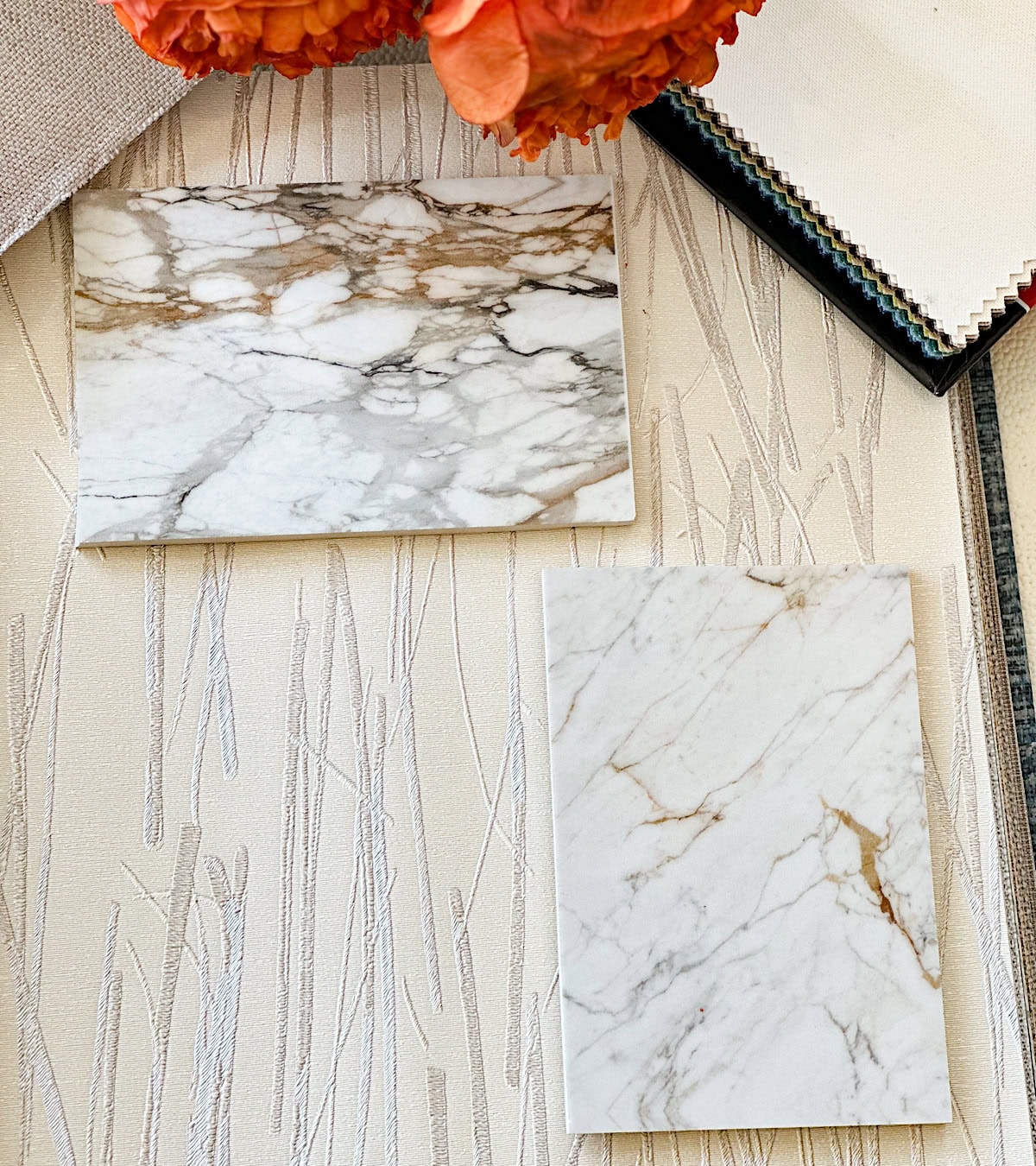 This decision saved us from so many future regrets. There are tons of gorgeous, trendy tiles out there, but I knew I didn’t want to get tired of something that covered an entire wall or floor. For our master bathroom, we went with a large center slab on the back wall behind the bathtub. It’s a big statement piece and I love it. Around it, we used classic accent tiles and added a subtle pop of color on the floor to create contrast. The rest stayed neutral and timeless with patterns and materials I know I won’t get sick of. If I wanted to try something more fun or trendy, I saved it for smaller spots, like the niche or powder room. It gave me flexibility without locking me into something I’d want to rip out in five years. Classic doesn’t mean boring. It means lasting.