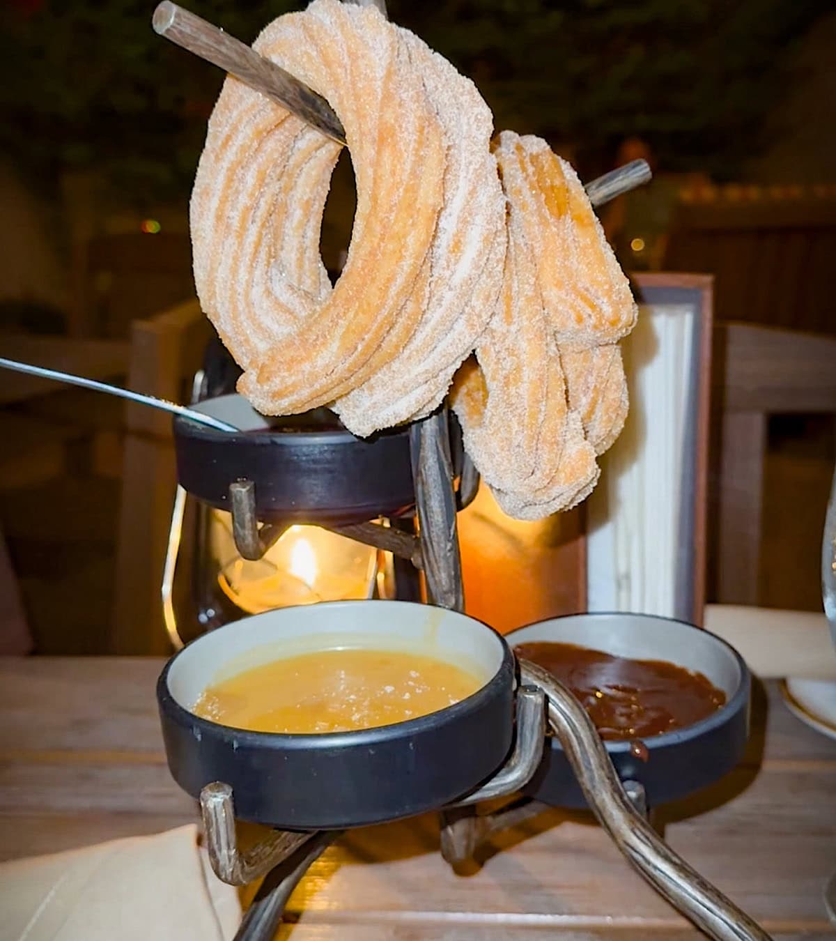 The setting is just beautiful. LON’s was originally Lon Megargee’s art studio, and you can still feel that creative energy in the way the rooms are laid out, fireplaces tucked into corners, adobe walls, candlelight, and soft string lights outside on the patio. It’s charming, a little romantic, and perfect for a relaxed evening.