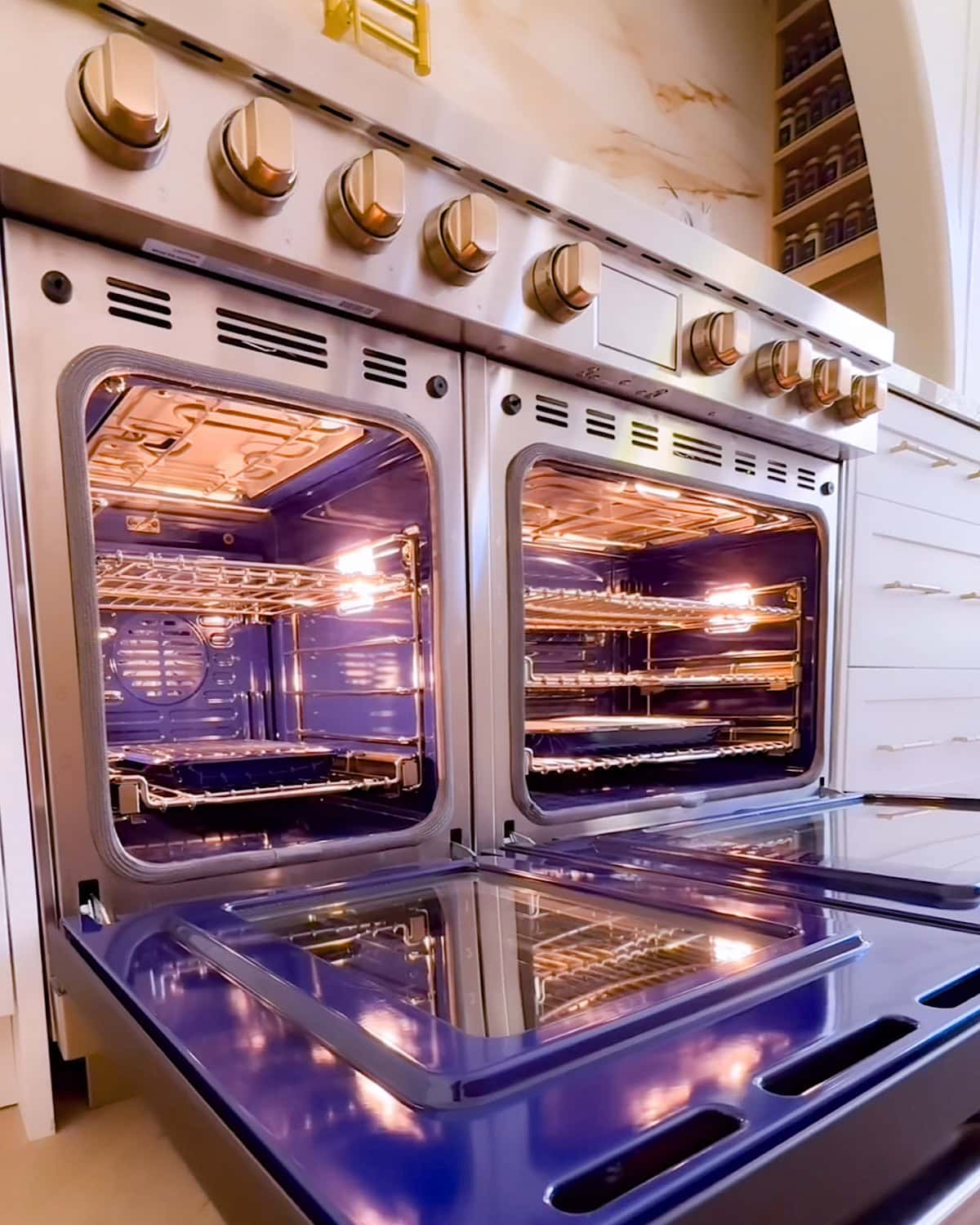 This 48 Wolf range gives the kind of control that makes you actually enjoy cooking. One thing I’ve really come to love about this range is how precise and consistent the heat is. When I’m cooking on the stovetop, the flame actually does what I want it to. If I turn it down to a simmer, it stays perfectly low without cutting out or getting uneven. I can melt chocolate, simmer a sauce, or keep something warm without worrying it’ll burn. And the oven is just as reliable. The temperature stays so steady that everything bakes evenly, no matter what rack it’s on. No uneven spots or overbaked edges, just perfectly cooked food every single time.